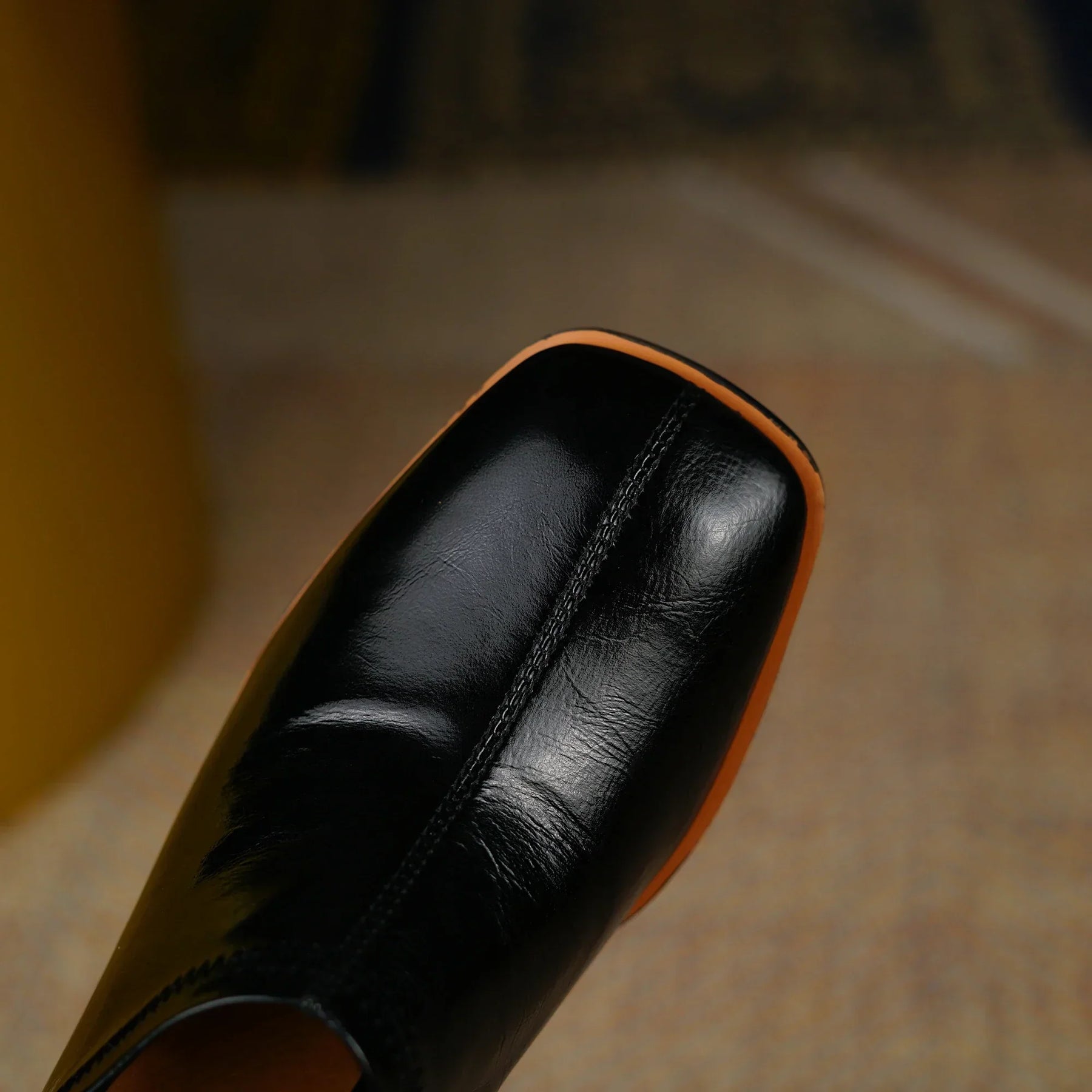 The Orlissa Square Ankle Boots are crafted from full-grain leather with a smooth, refined finish. A sleek square toe and a bold 6.5 cm block heel create a modern silhouette that blends style with stability. Inside, a soft sheepskin and pigskin lining ensures comfort, while the durable cow muscle outsole provides long-lasting wear. Designed to stand out, these boots pair effortlessly with tailored trousers, dresses, or casual denim.